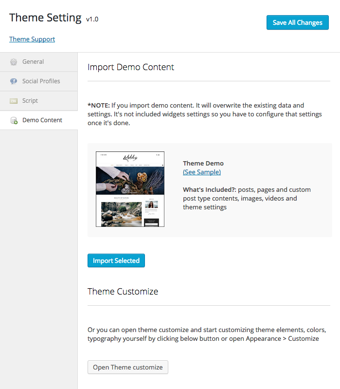 Theme Setting > Demo Content for content importing feature